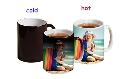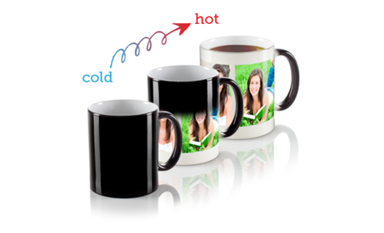 An adorable mug with a magic in it. Looks like a simple black mug, but when a hot liquid is poured in the image printed on it gradually appears. As soon as the drink gets over.. voila! The image to disappeears.